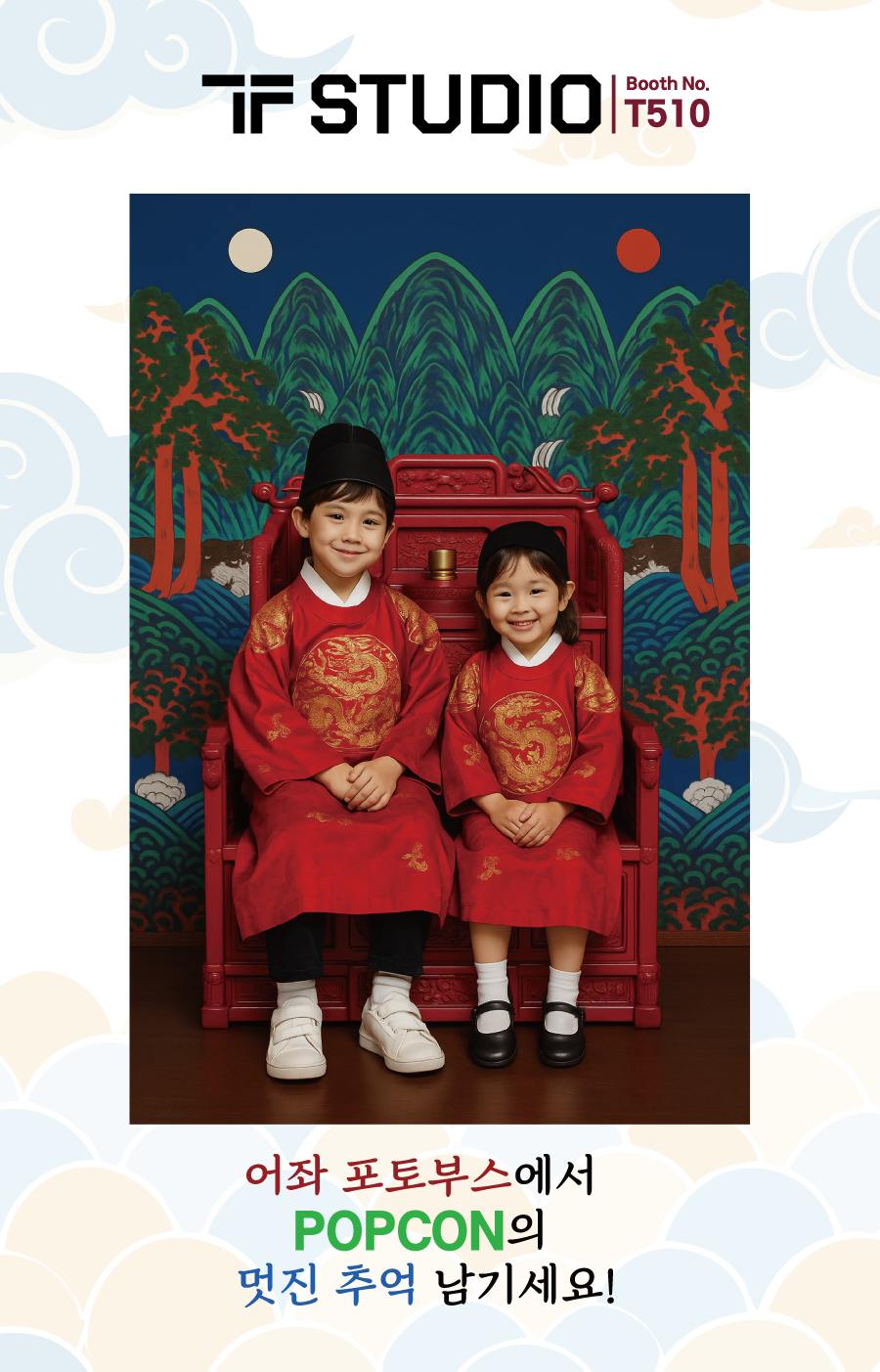 At Seoul POPCON 2025, we are unveiling a life-size royal throne (Eojwa) as an exclusive photo booth zone. Step into history, capture unforgettable moments, and create fun and lasting memories with us!